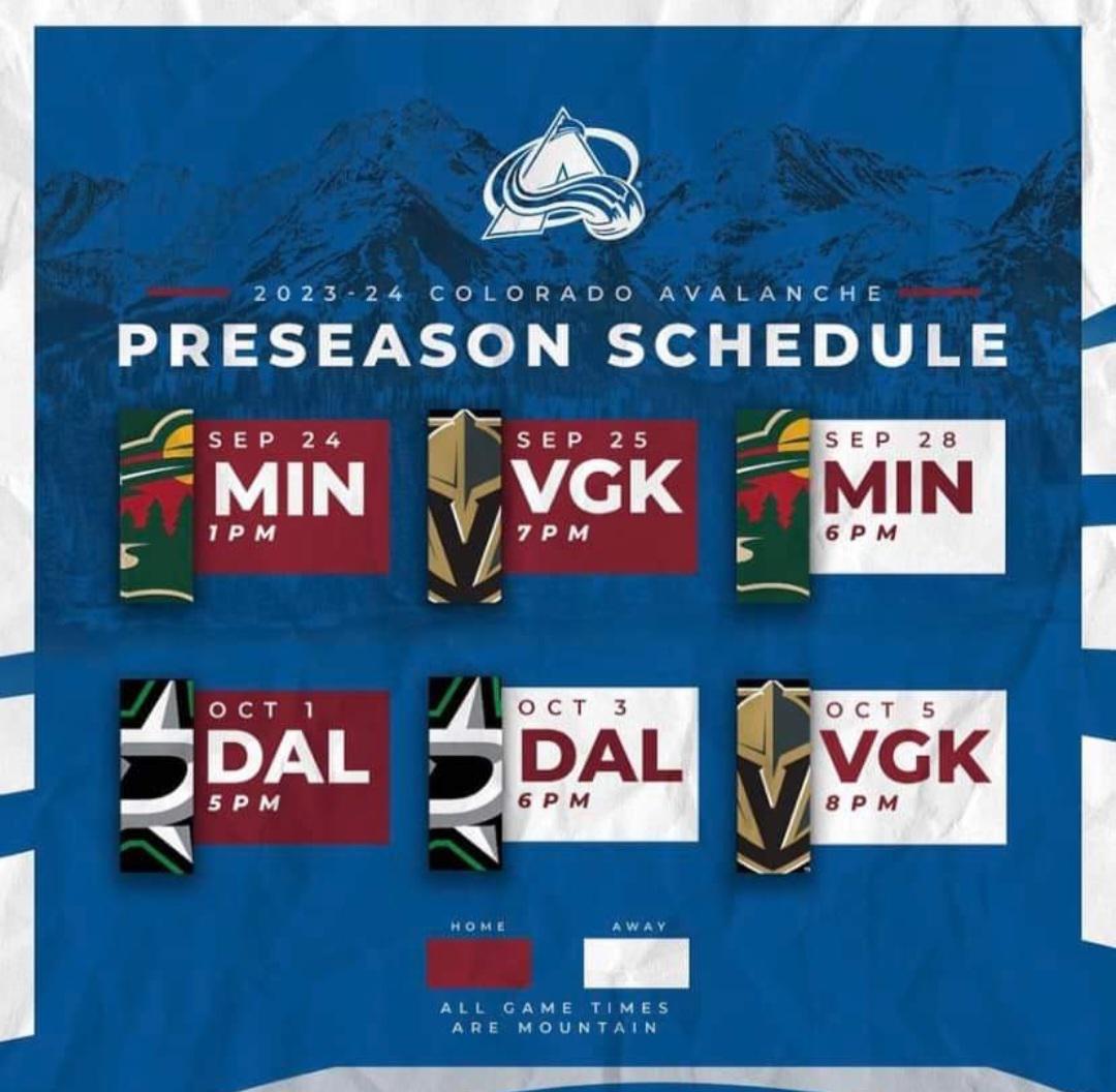 Colorado Avalanche Preseason Schedule
